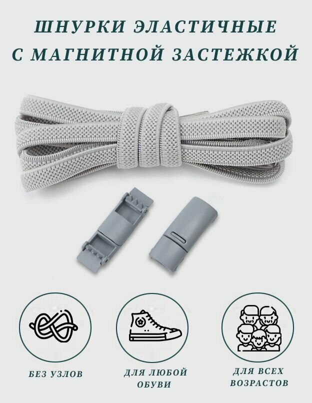 Отзывы на Шнурки эластичные для обуви с магнитными застёжками в цвет шнурков, 2 шт, длина 1 м, серые