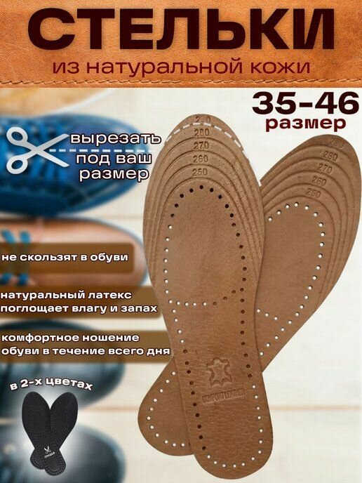 Отзывы на Стельки для обуви кожаные, антибактериальные, дышащие, универсальные (женские, мужские), коричневые 35-46 р, 1 пара