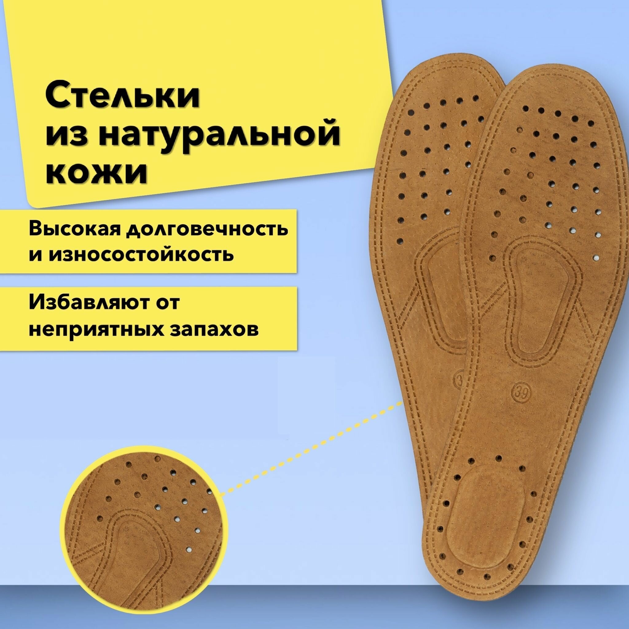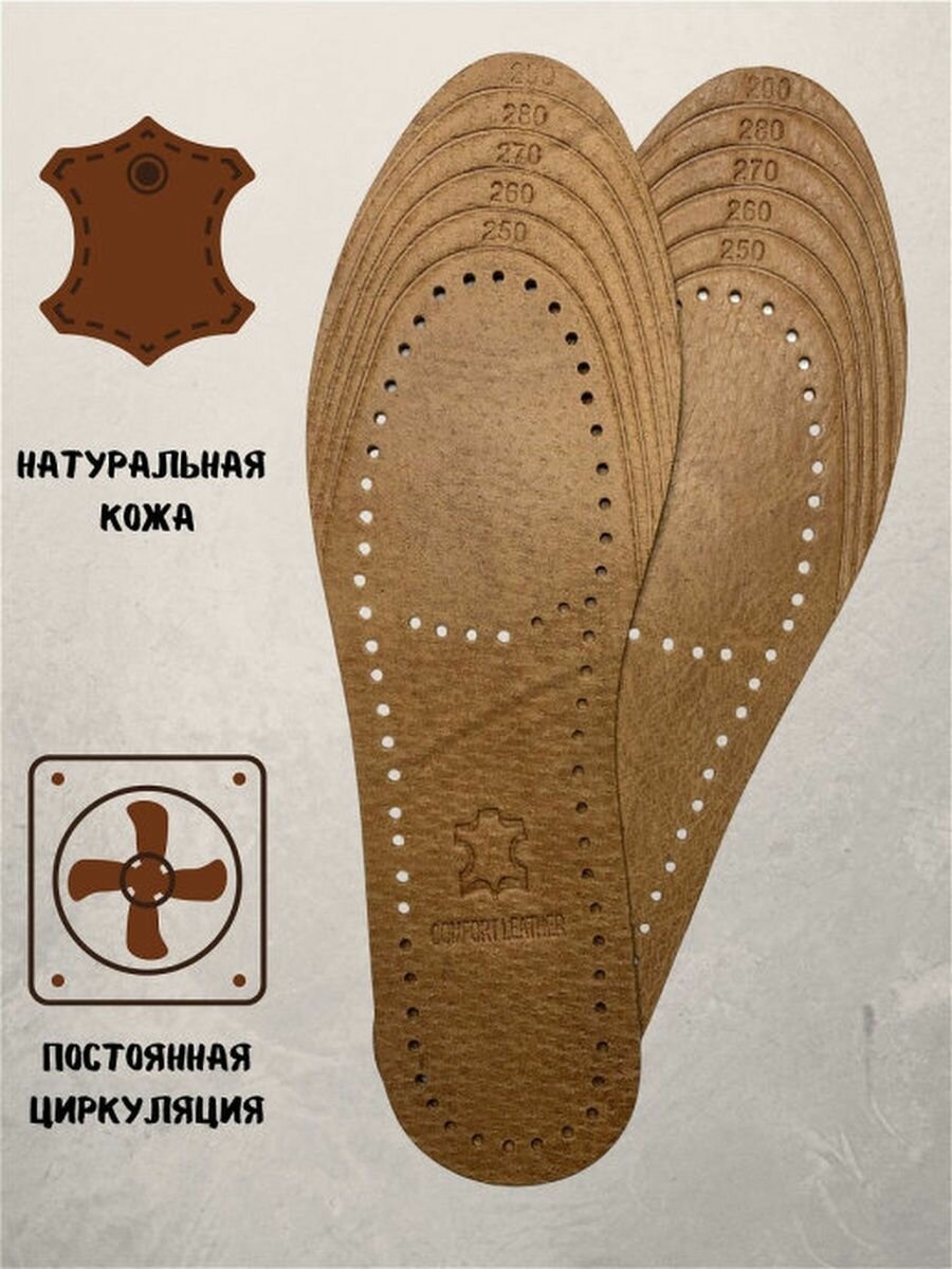 10 цен на Стельки для обуви кожаные, антибактериальные, дышащие, универсальные (женские, мужские), коричневые 35-46 р, 1 пара