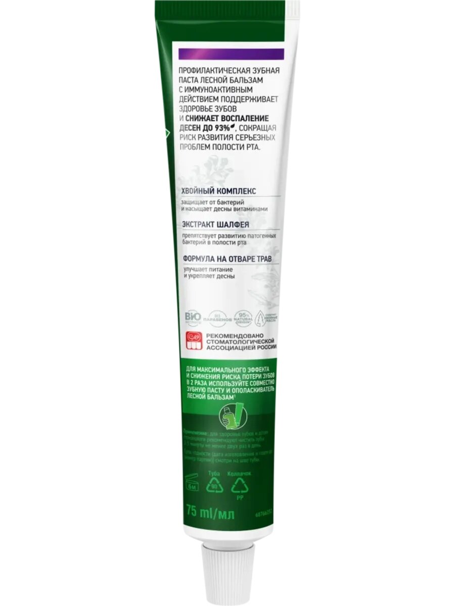 Зубная паста лесной бальзам Шалфей и алоэ вера, 75 мл информация: