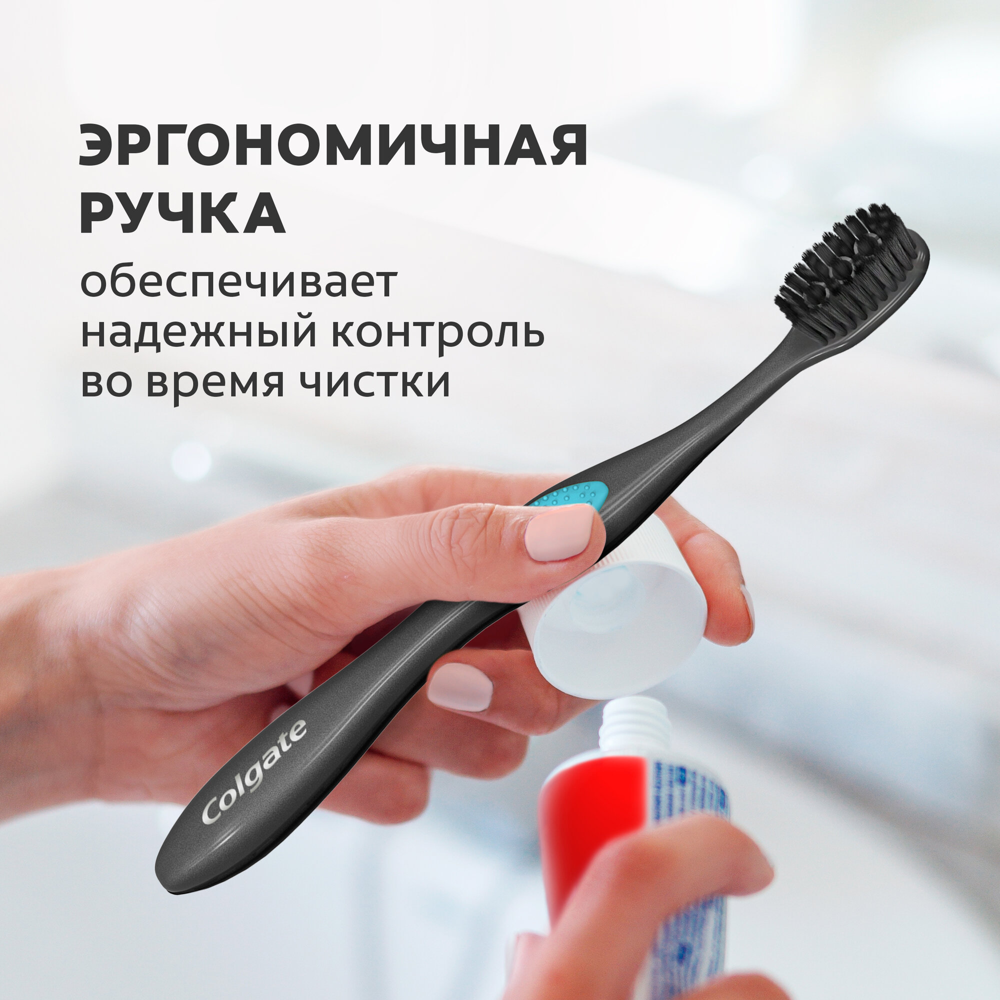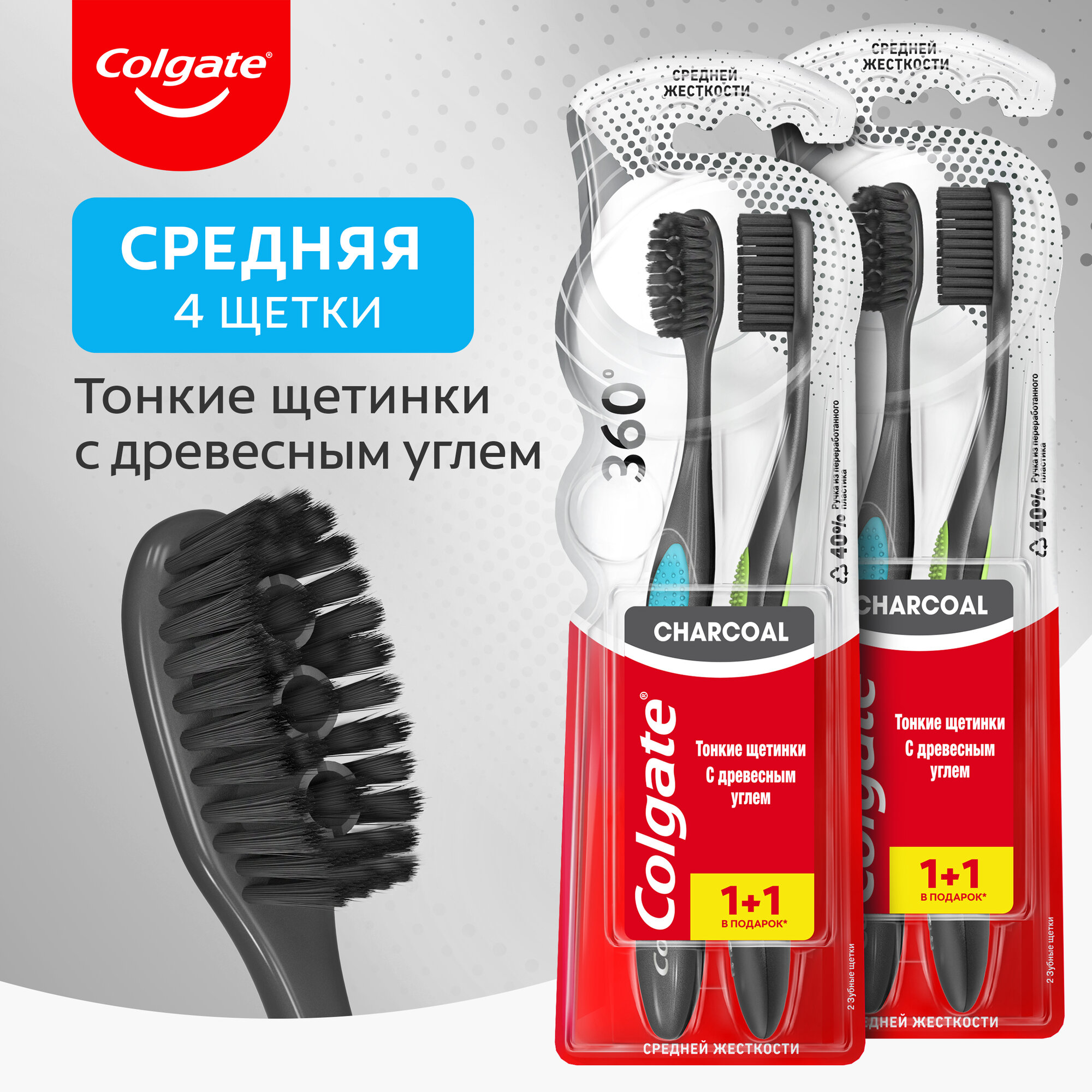Отзывы на Зубная щетка Colgate 360 с древесным углем многофункциональная средней жесткости, 1+1 в подарок, 2 шт