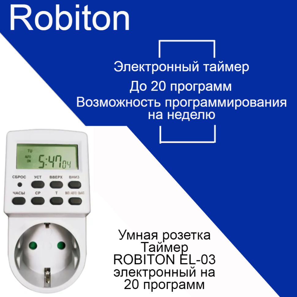 Умная розетка Таймер ROBITON EL-03 электронный на 20 программ BL1 информация: