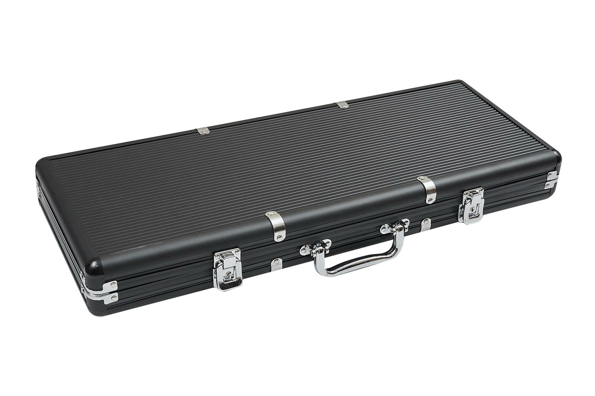 | В наборе | - 500 фишек (номиналы фишек: 5 - 75 шт., 10 - 75 шт., 25 - 75 шт., 50 - 75 шт., 100 - 100 шт., 500 - 100 шт.); - 5 костей; - 2 колоды карт; - фишка дилера; - кейс; - ключи от кейса. |