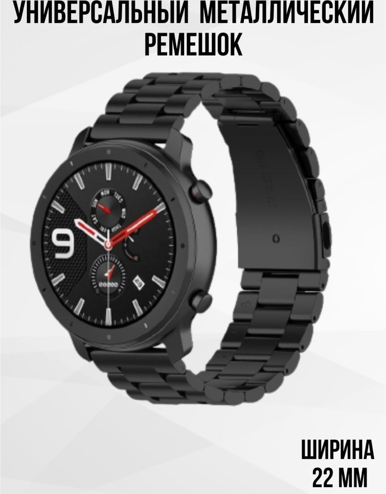 10 цен на Металлический ремешок универсальный 22 мм/ Браслет блочный для часов Huawei, Amazfit. Honor 22 мм. Черный