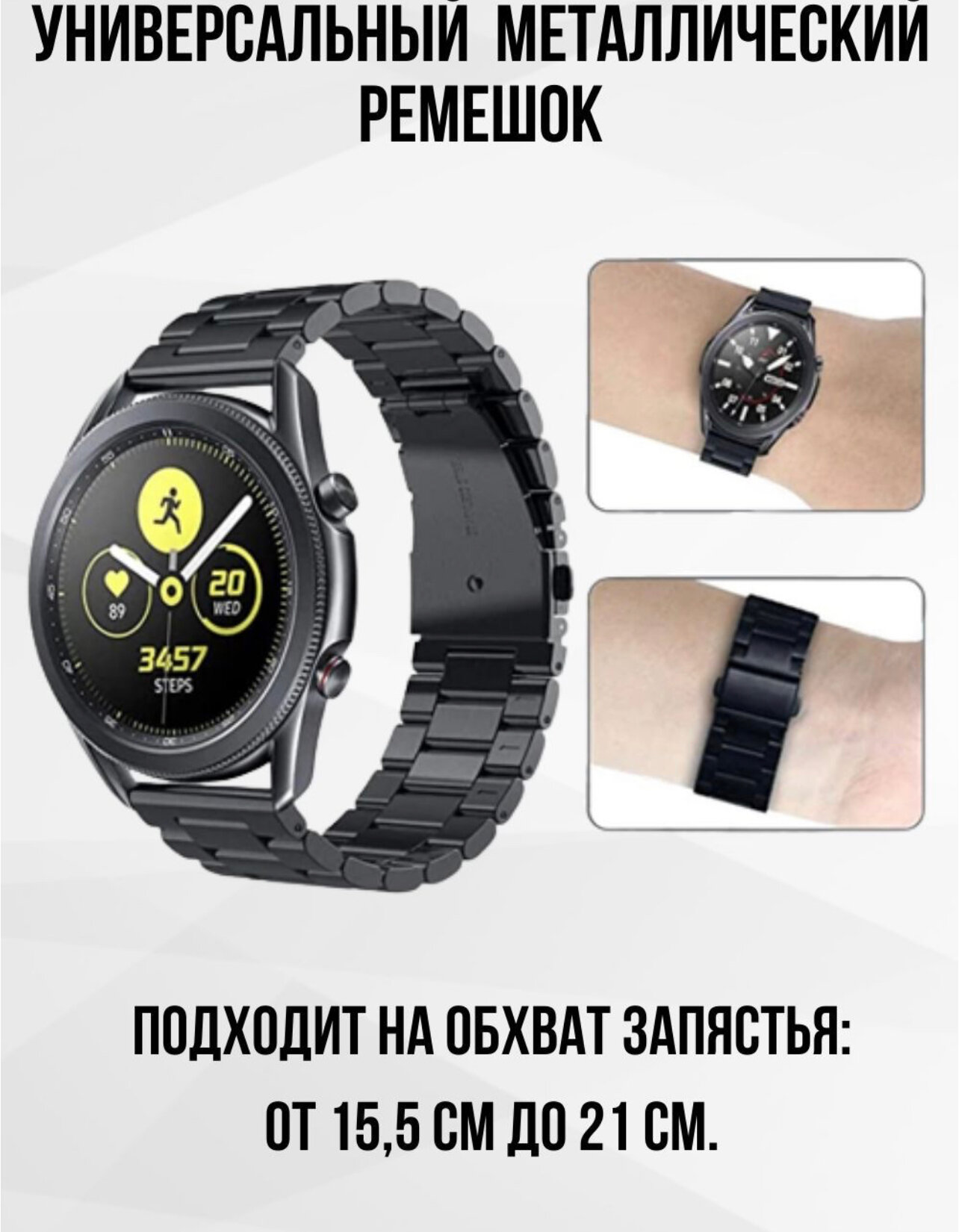Отзывы на Металлический ремешок универсальный 22 мм/ Браслет блочный для часов Huawei, Amazfit. Honor 22 мм. Черный
