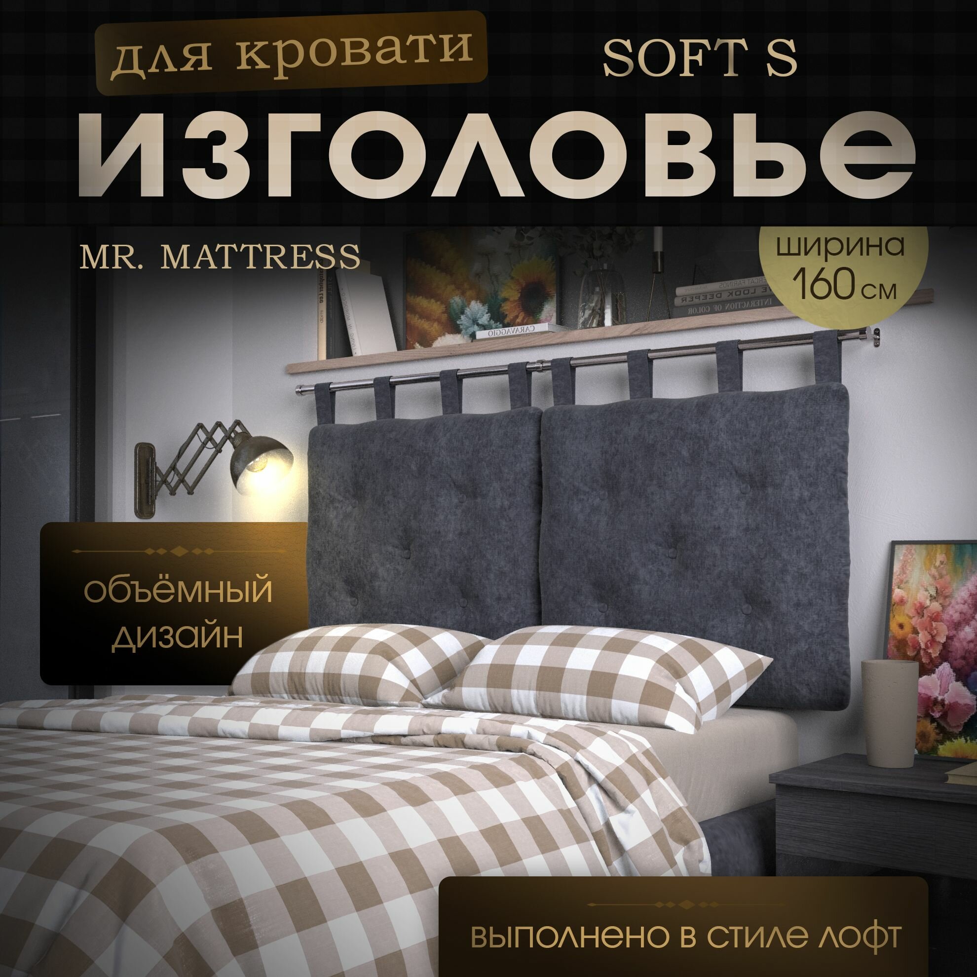 Набивное изголовье-подушка для кровати Mr. Mattress Soft S 160x70 Iron с креплением