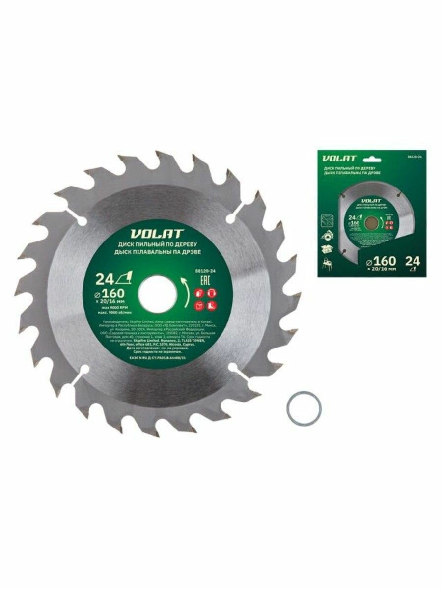 Диск пильный 160х20/16 мм 24 зуба волат по дереву (88120-24) информация: