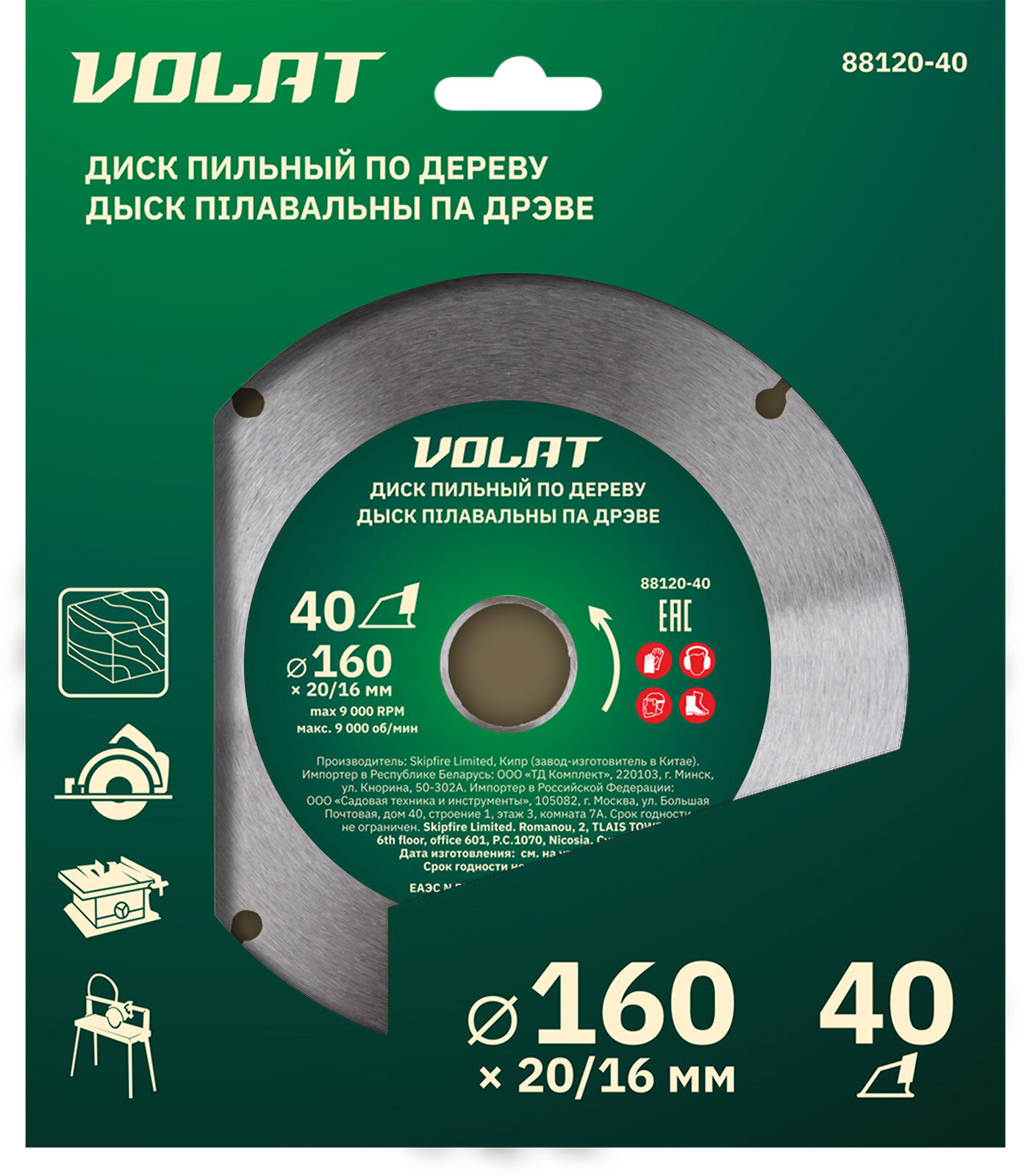 10 цен на Диск пильный 160х20/16 мм 40 зубьев волат по дереву (88120-40)