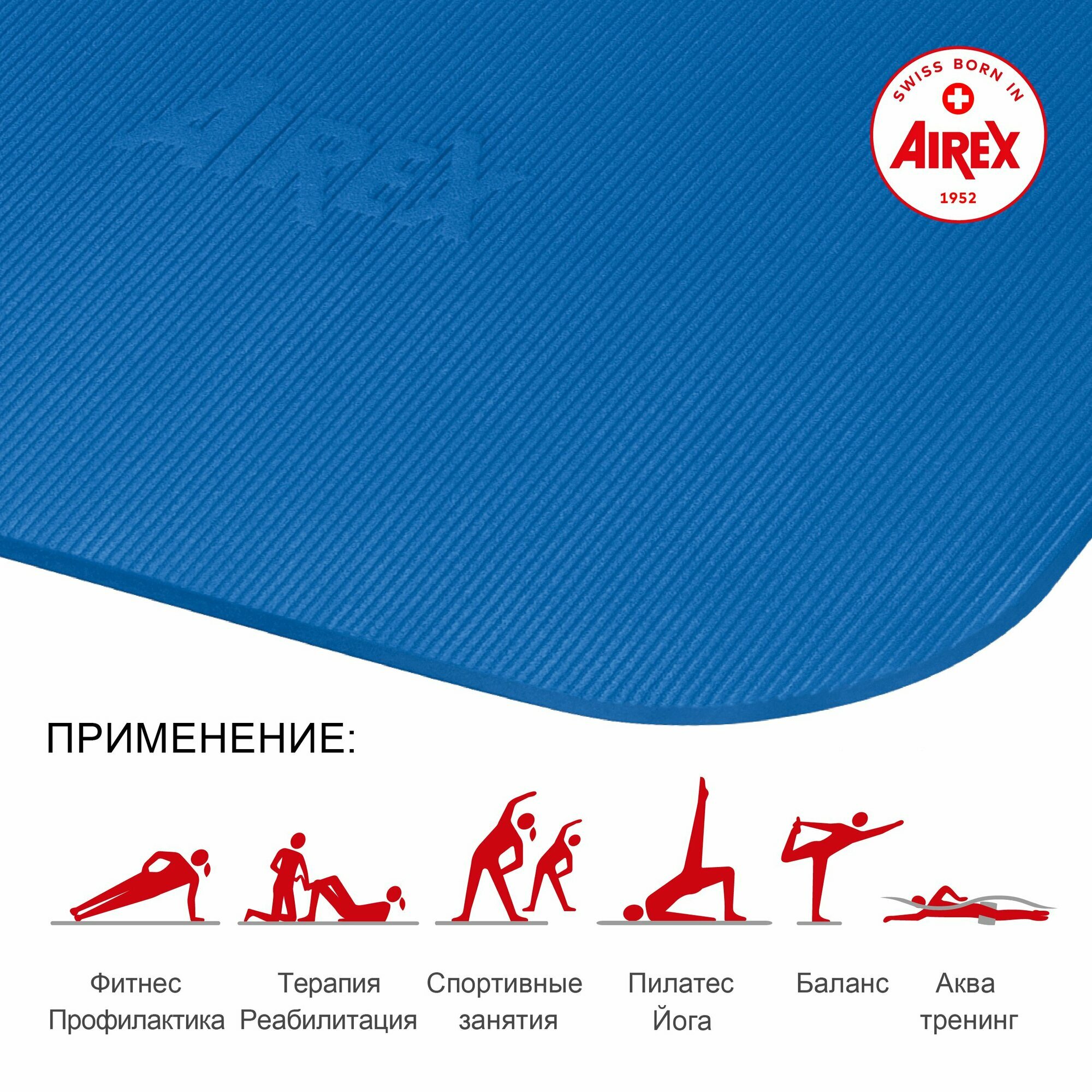 Коврик гимнастический для фитнеса AIREX Corona, 185х100х1,5 см, синий информация: