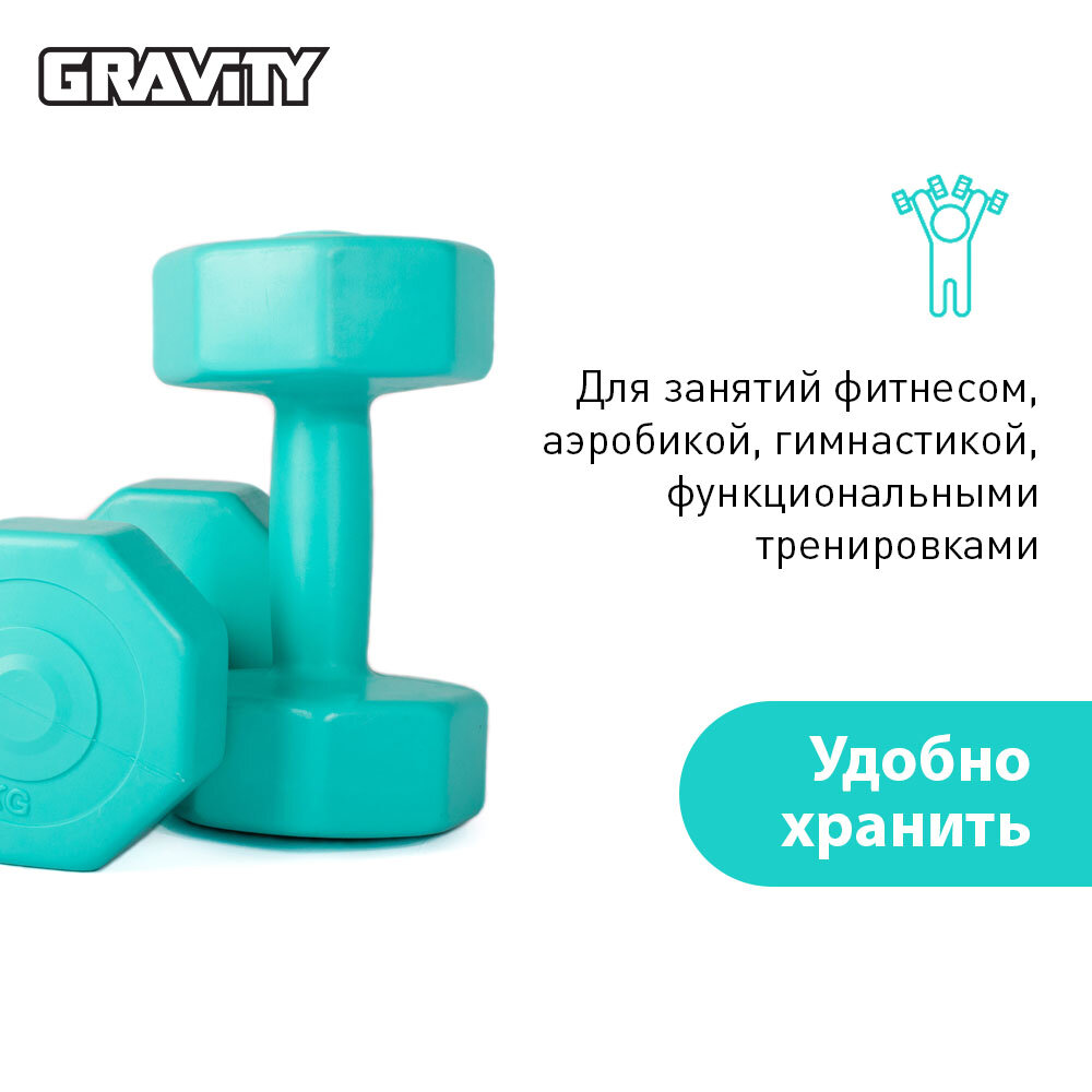 Виниловые гантели Gravity, восьмиугольные, 1.5 кг, пара, бирюзовый информация: