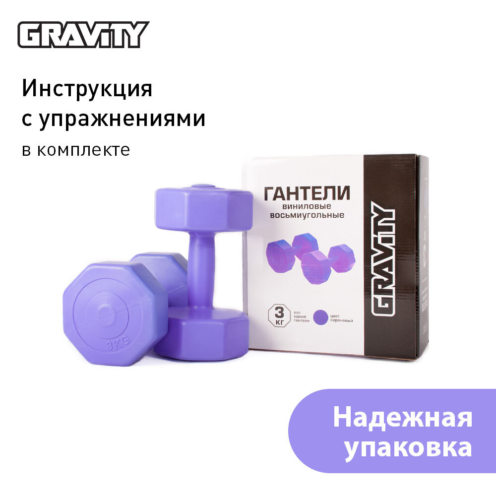 10 цен на Виниловые гантели Gravity, восьмиугольные, 3 кг, пара, сиреневый