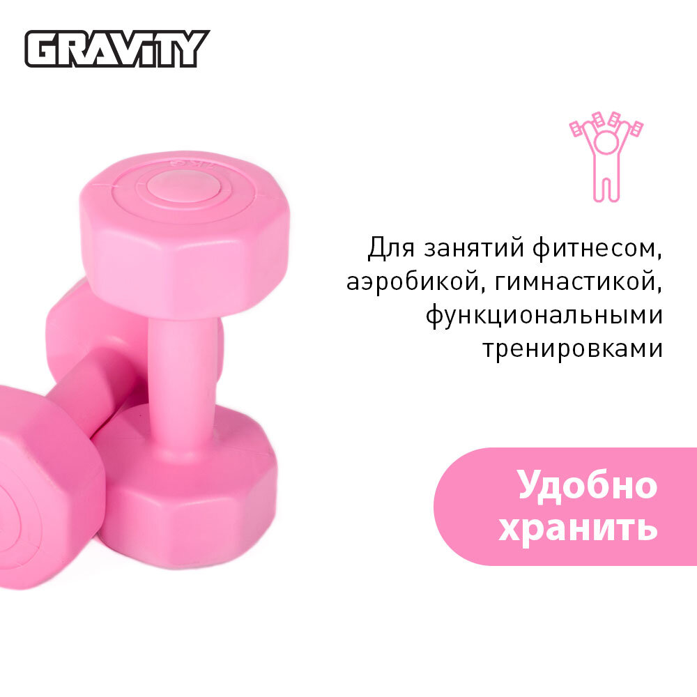 Отзывы на Виниловые гантели Gravity, восьмиугольные, 1 кг, пара, розовые