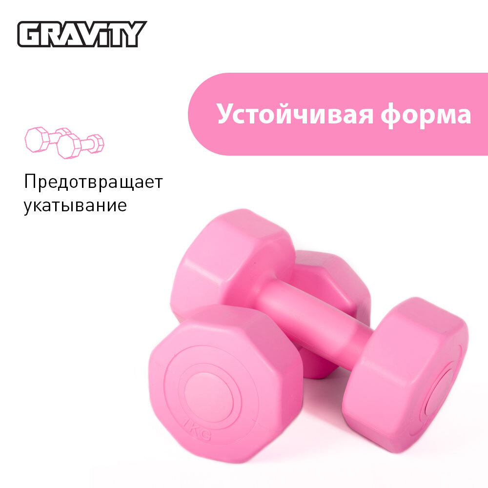 10 цен на Виниловые гантели Gravity, восьмиугольные, 1 кг, пара, розовые