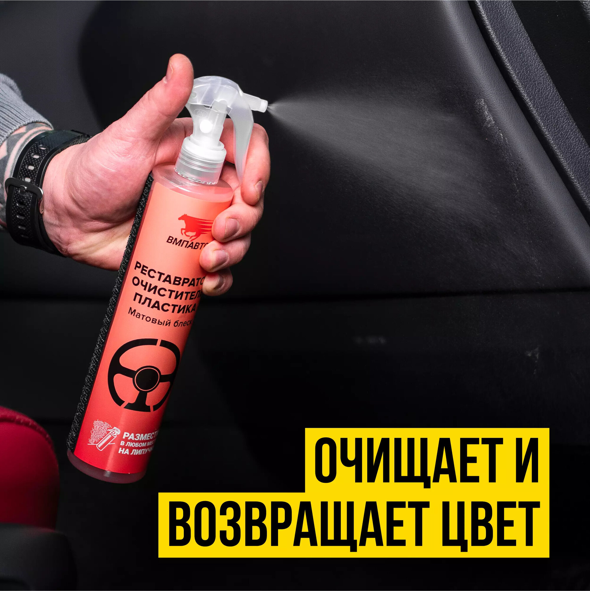 | Дополнительная информация | не оставляет жирной плёнки; содержит антистатические компоненты, препятствующие оседанию пыли; подходит для обработки приборной панели, внутренних и наружных пластиковых элементов; на липучке |