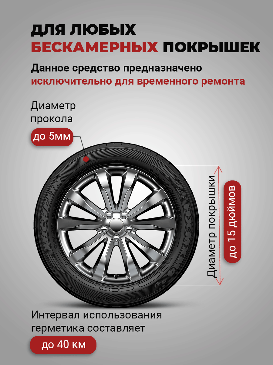 | Подробная комплектация | Герметик шин средство аварийного ремонта колес - 1 баллончик 520 мл |