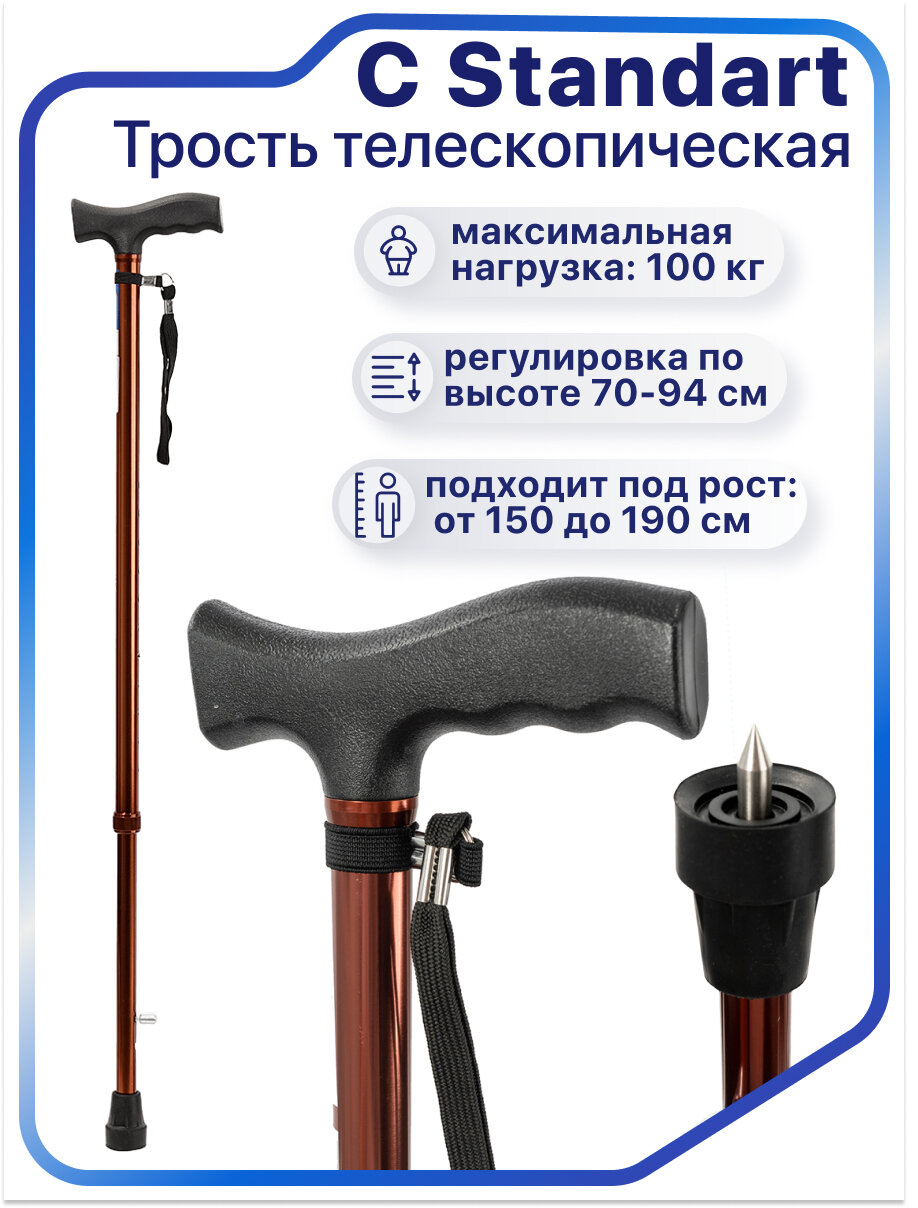 Отзывы на Трость опорная для ходьбы телескопическая C Standart с УПС (устройство против скольжения) для взрослых, пожилых людей и инвалидов