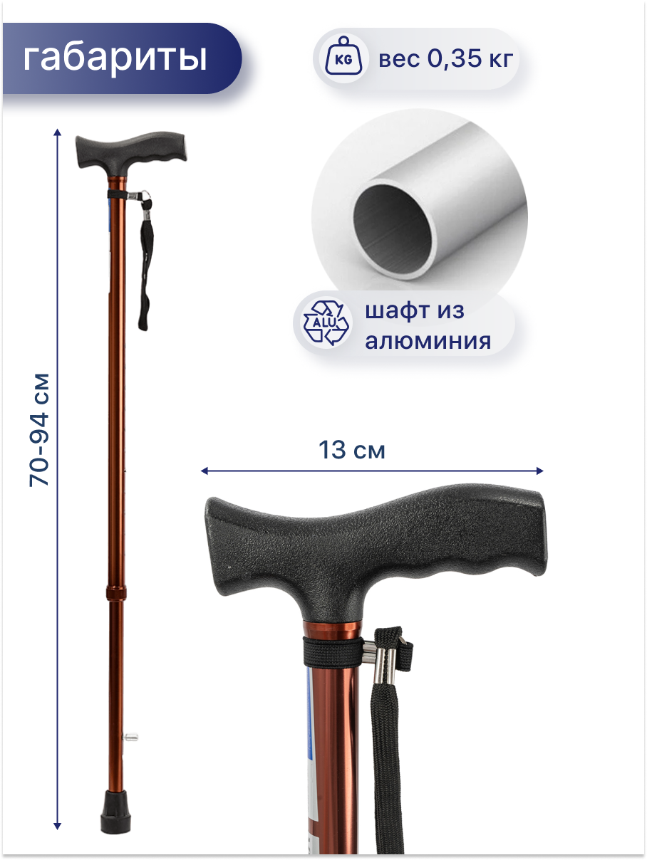 Трость опорная под рост 155-190 см для ходьбы для пожилых цвет бронза Т-образная ручка C Standart 990 ₽