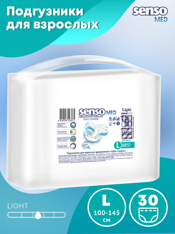 Подгузники для взрослых "Senso Med" Light L (100-145), 30 шт.