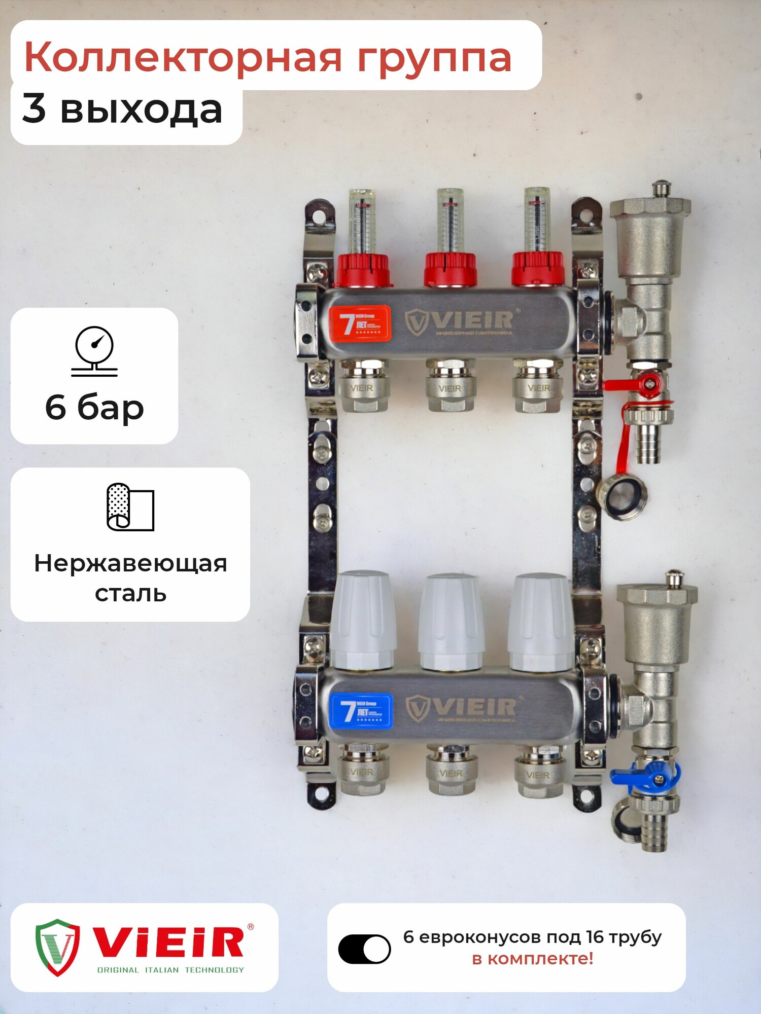 Комплект для водяного теплого пола 3 контура / VIEIR информация: