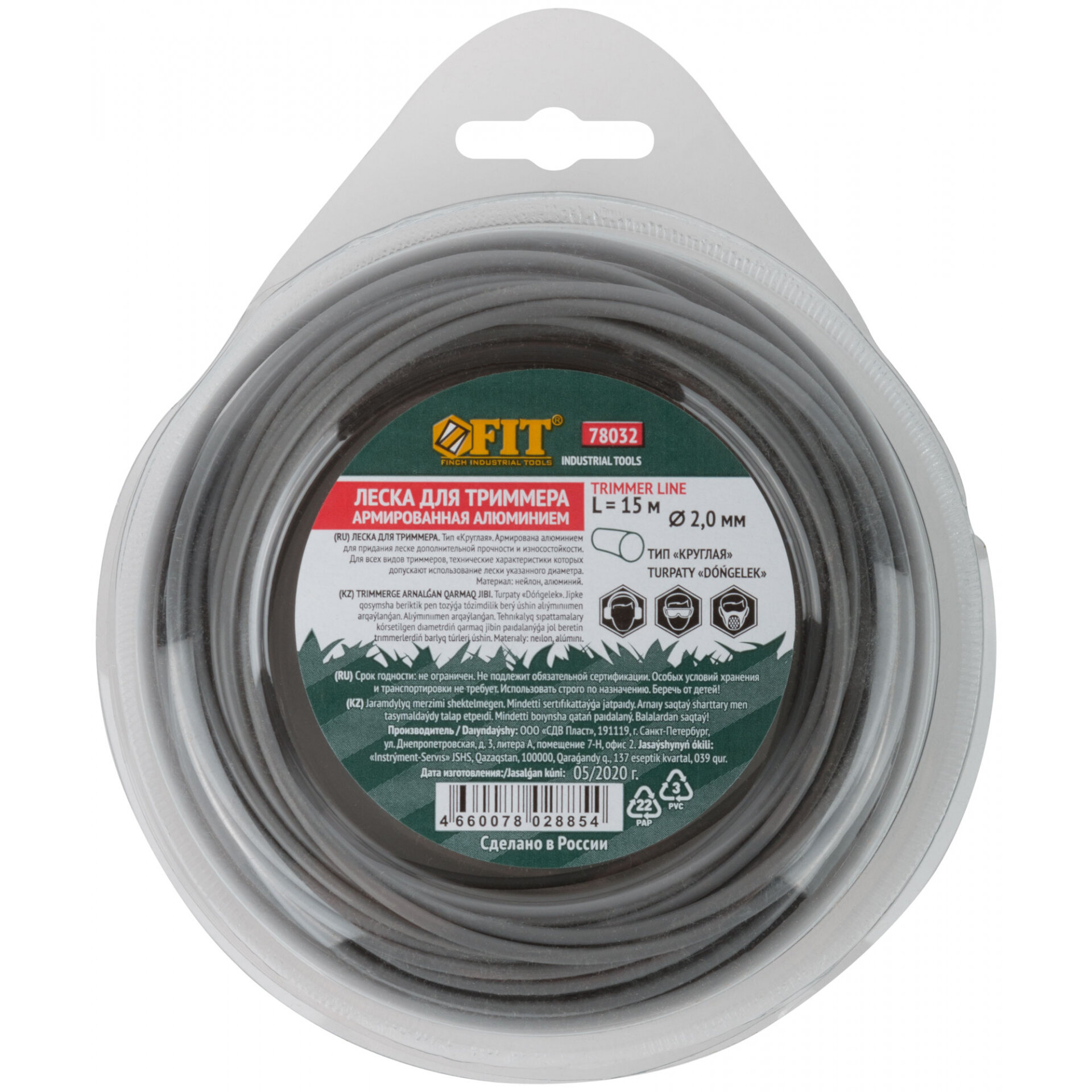 Леска для садовых триммеров армированная алюминием "Круглая" 2,0 мм х 15 м, FIT 78032 (1 шт.) информация: