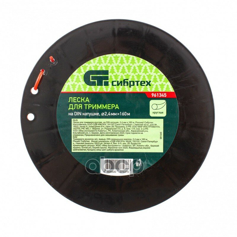 Леска Для Триммера Круглая, На Din Катушке, 2,4 Мм Х 160 М, Россия// Сибртех Сибртех арт. 961345 информация: