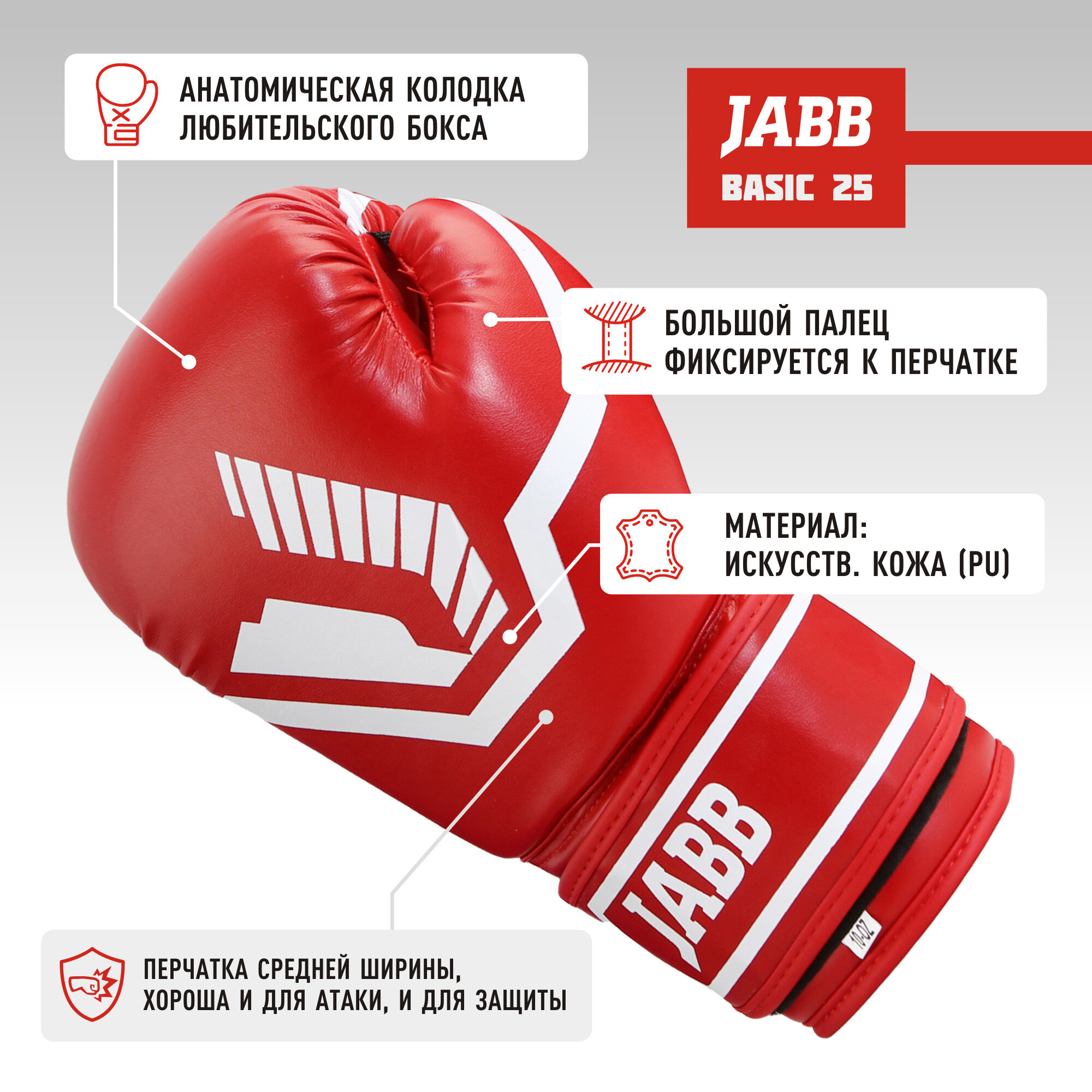 10 цен на Перчатки боксерские мужские тренировочные(иск. кожа) Jabb JE-2015/Basic 25 красный 12ун.