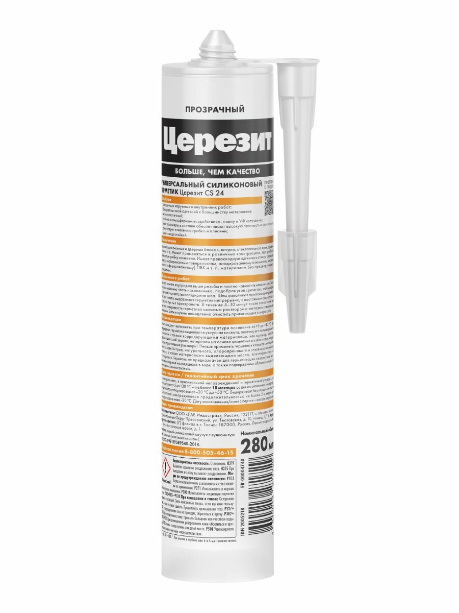Универсальный силиконовый герметик Церезит CS 24, прозрачный, 280 мл информация: