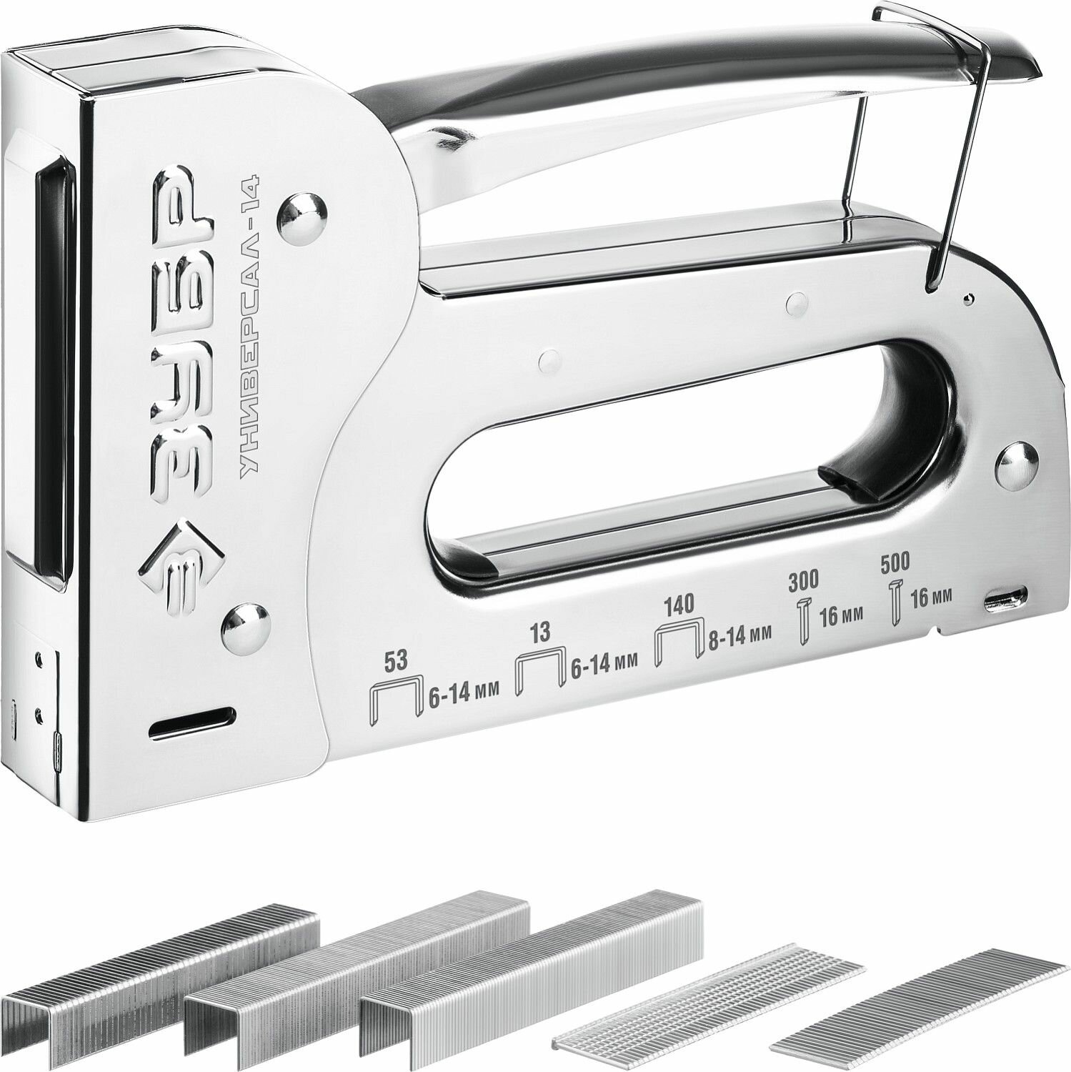 Степлер для скоб "Универсал 14" 6- в-1: тип 53 (6-14 мм) / 140 (8-14 мм) / 53F (8-14 мм) / 13 (6-14 мм) / 300 (16 мм) 500 (16 мм), ЗУБР Профессионал