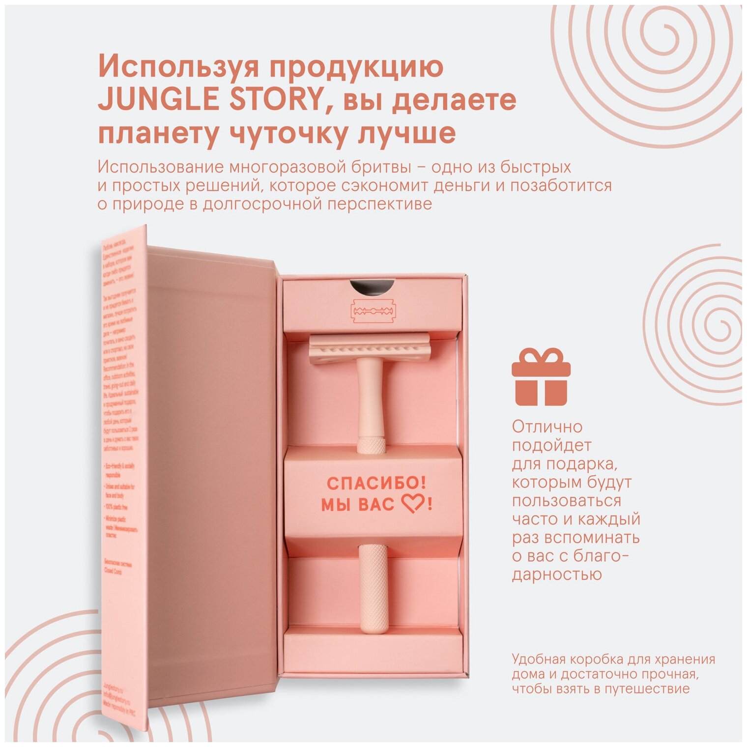 Безопасный бритвенный Т- образный станок женский Нежный Розовый в подарочной упаковке на магните + 5 лезвий комплект информация: