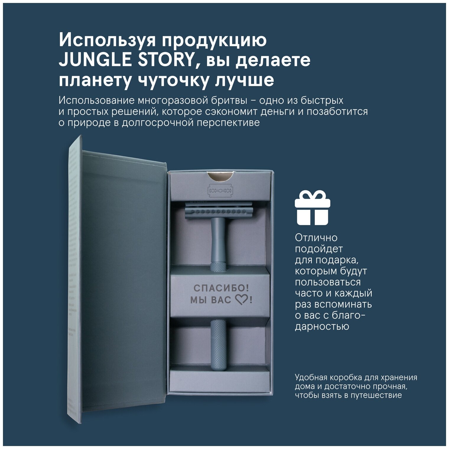 Безопасный бритвенный Т- образный станок унисекс Космический серый в подарочной упаковке на магните + 5 лезвий комплект информация: