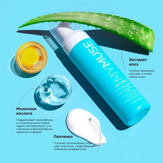 Пенка для интимной гигиены для чувствительной кожи MY MUSE с молочной кислотой, алоэ и пантенолом, 200 мл 451 ₽