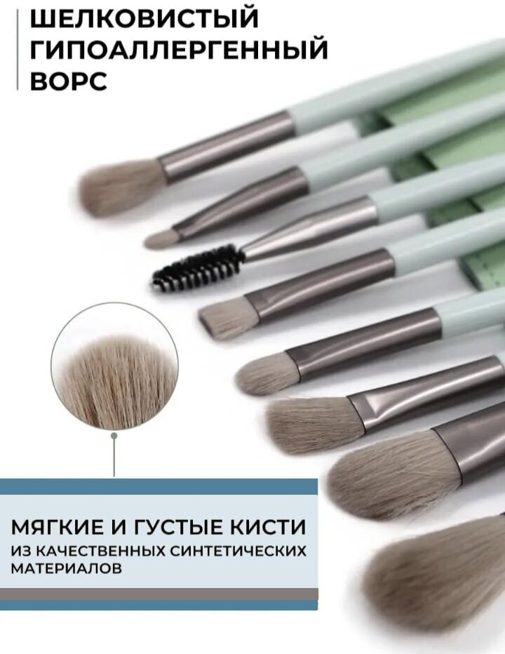 10 цен на NEW-25: Компактный набор кистей ABBA Make Up Collection для макияжа. Бирюзовый - 8 шт. Себе и в подарок.