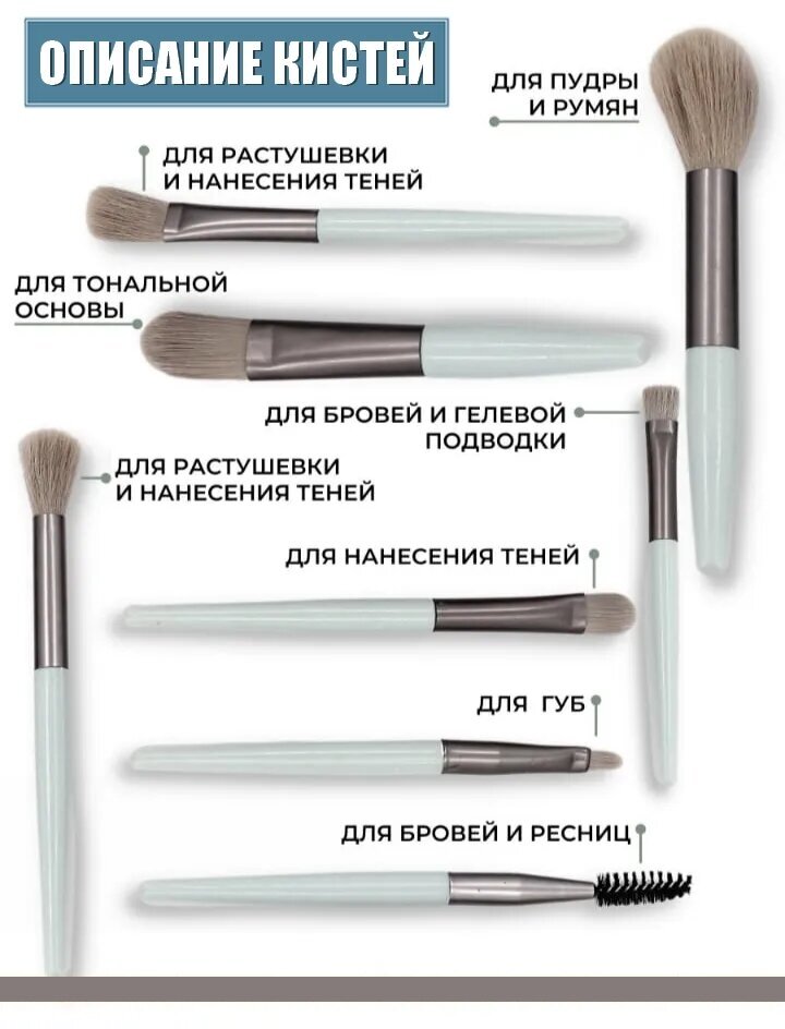 Кисти для макияжа профессиональные набор бирюзовый. Кисть для бровей глаз теней 8 шт. Себе и в подарок.
