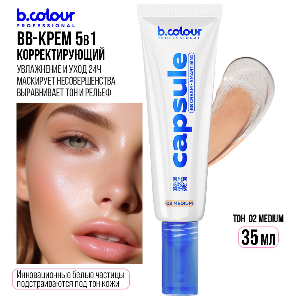 B.COLOUR PROFESSIONAL BB крем для лица, тональный крем для лица увлажняющий, выравнивающий CAPSULE 02 MEDIUM информация: