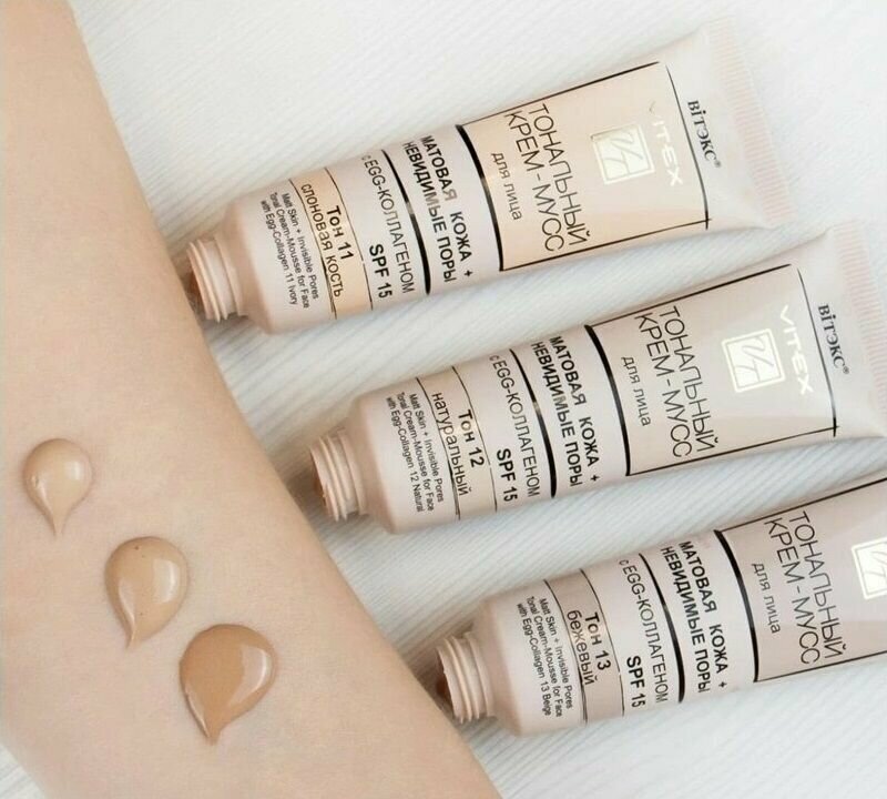 Отзывы на Витэкс Тональный крем-мусс для лица матовая кожа+невидимые поры С EGG-коллагеном SPF15, тон 11