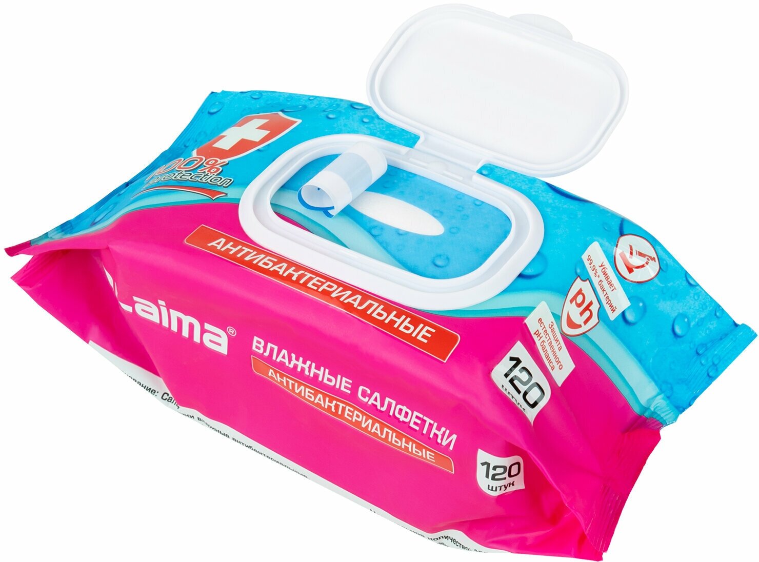 10 цен на Салфетки влажные антибактериальные для уборки 120 шт, с пластиковым клапаном, Laima Antibacterial, 112497