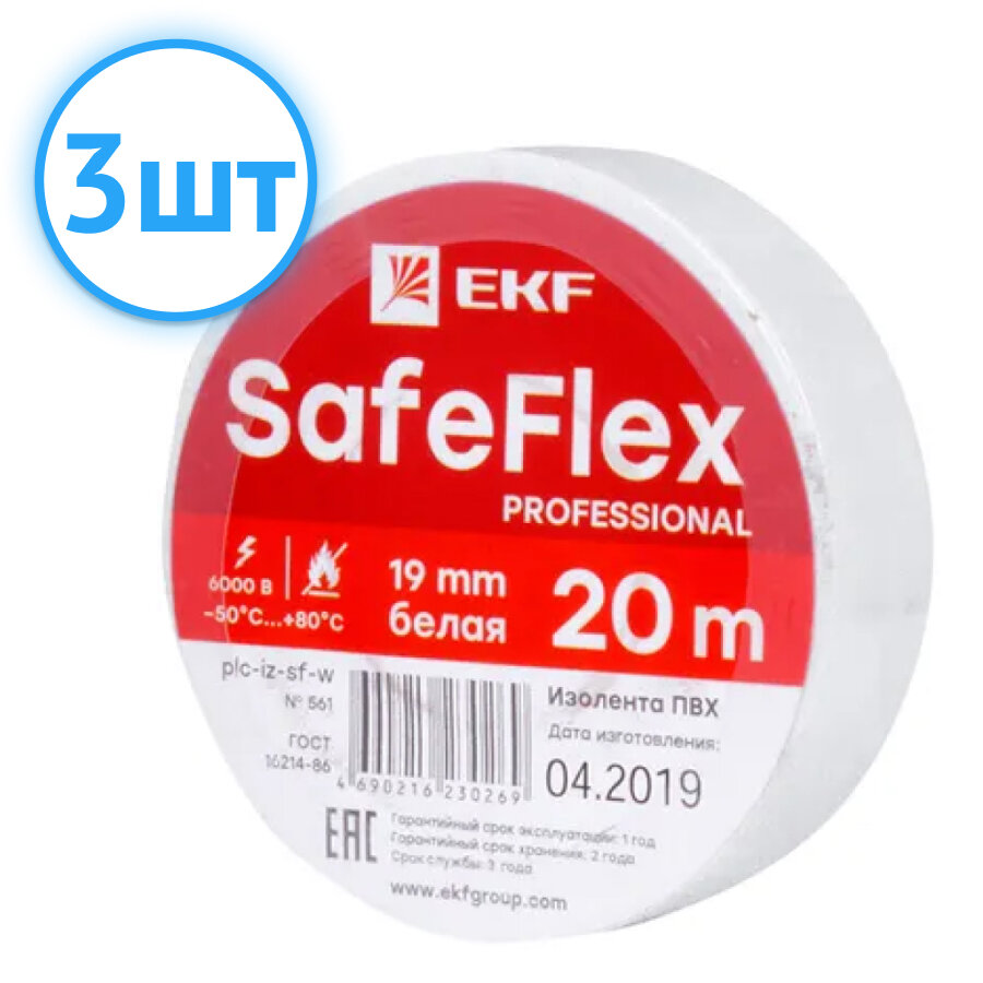Изолента EKF SafeFlex PROxima ПВХ 19мм 20м белый plc-iz-sf-w (комплект 3шт.) информация: