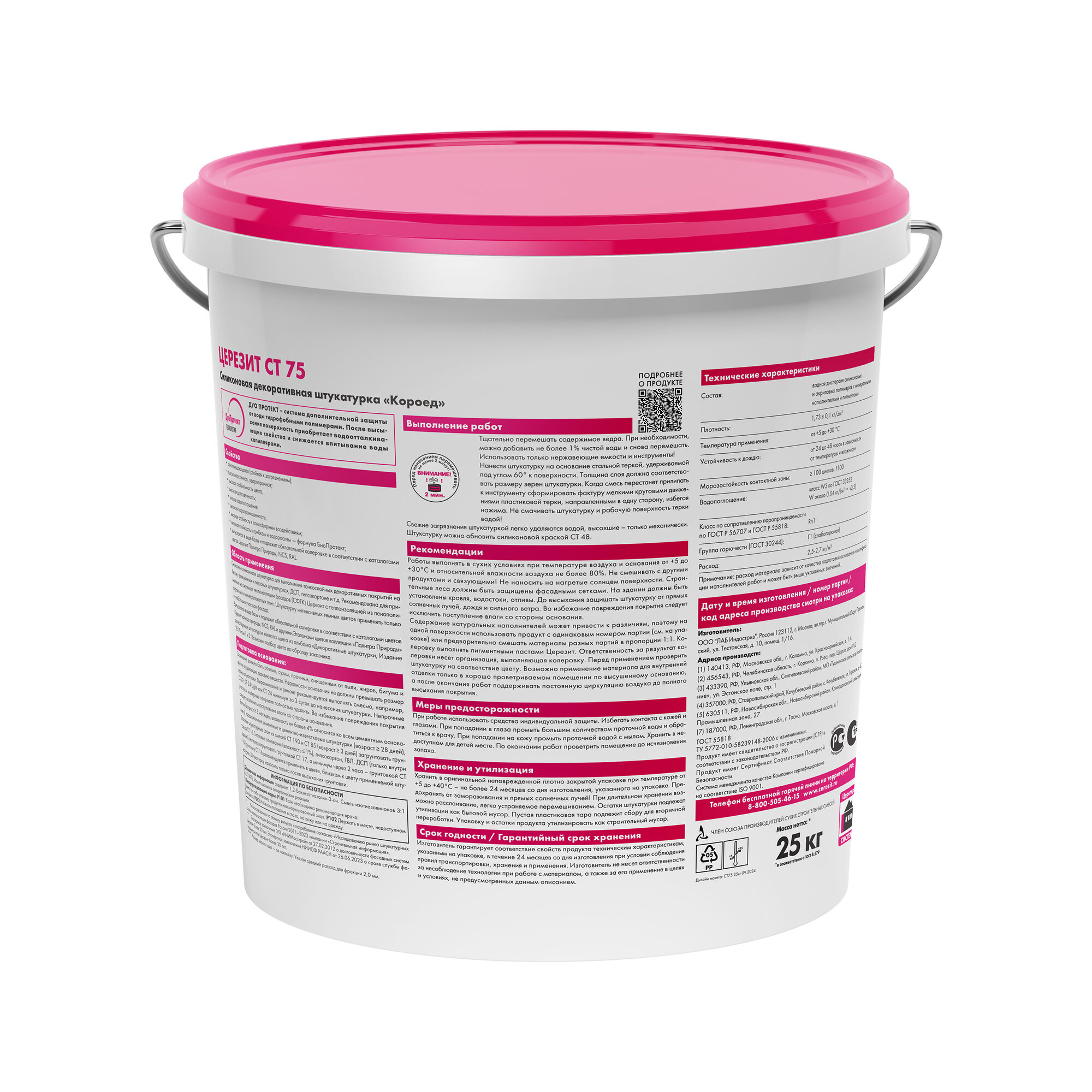 10 цен на Декоративная штукатурка для стен Церезит, Ceresit CT 75, короед, силиконовая, готовая к применению, зерно 2 мм, 25 кг