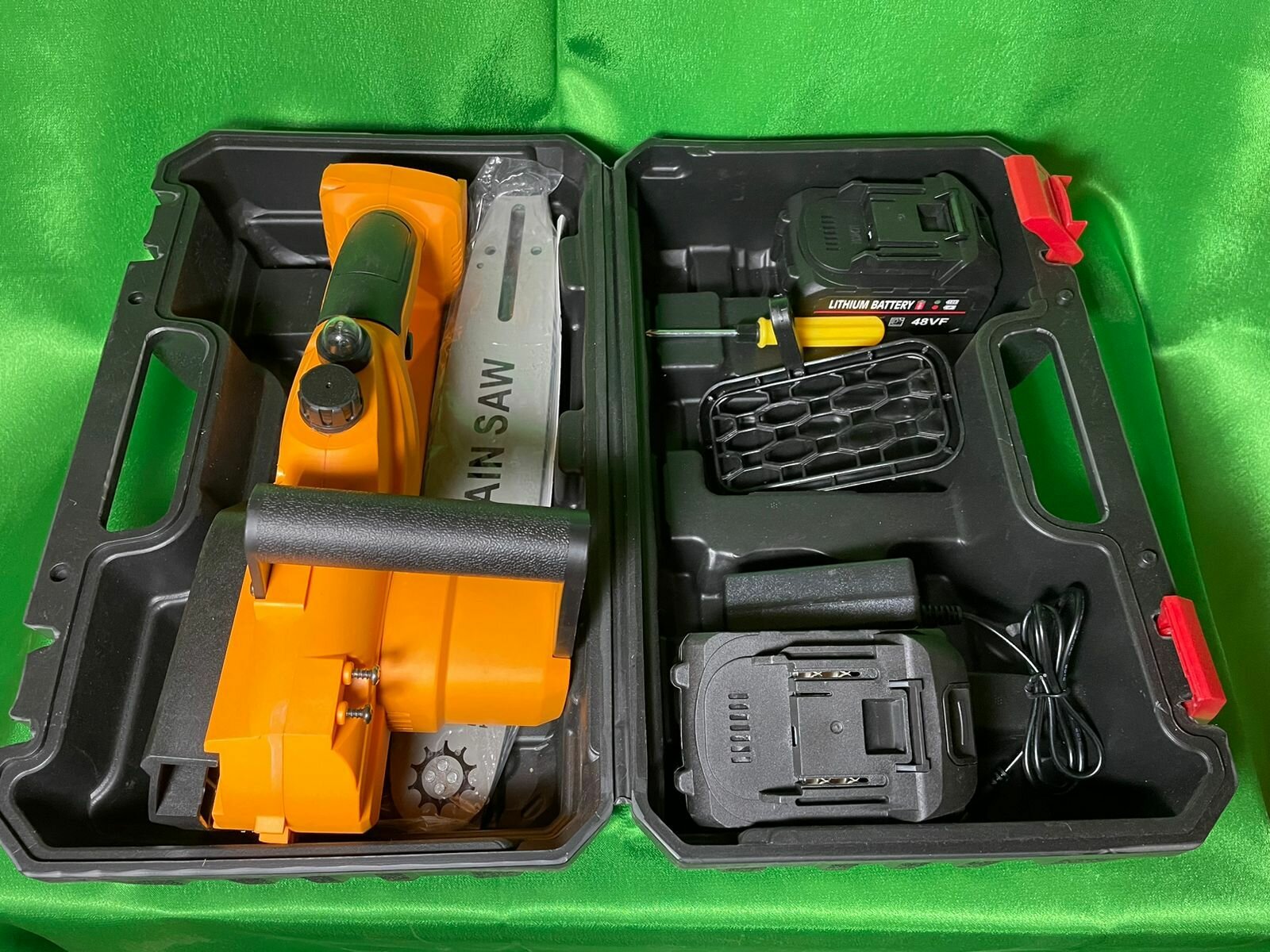 Пила аккумуляторная "цепная" электропила (8 дюймов) / 48V пила аккумуляторная цепная, 2 батареи, чемоданчик, защитный кожух