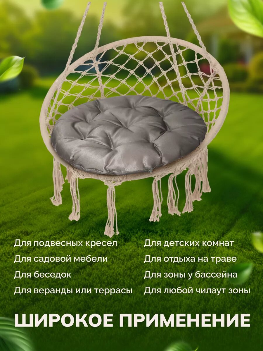 Подушка на качели Делюкс Текстиль, водоотталкивающая, грета, серая, 60x60 см информация:
