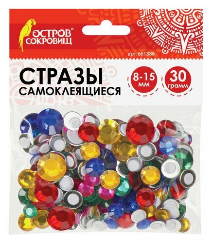Комплект 2 шт, Стразы самоклеящиеся "Круглые", размер 8-15 мм, 30 г, 5 цветов, остров сокровищ, 661386 информация: