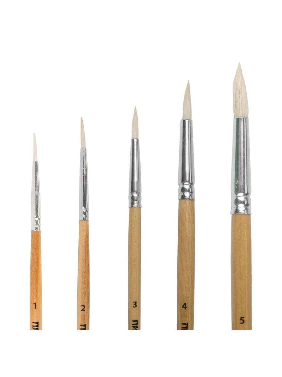 Кисти пифагор, набор 5 шт. (Коза: круглые № 1, 2, 3, 4, 5), информация: