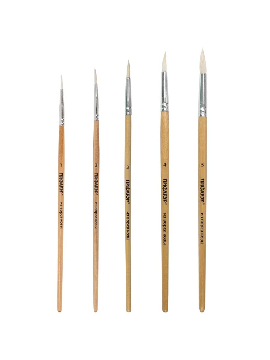 Кисти пифагор, набор 5 шт. (коза, круглые № 1, 2, 3, 4, 5), блистер, 200887
