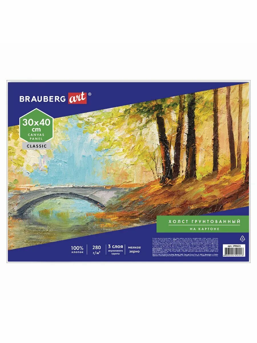 Холст на картоне BRAUBERG ART CLASSIC, 30*40см, грунтованны информация:
