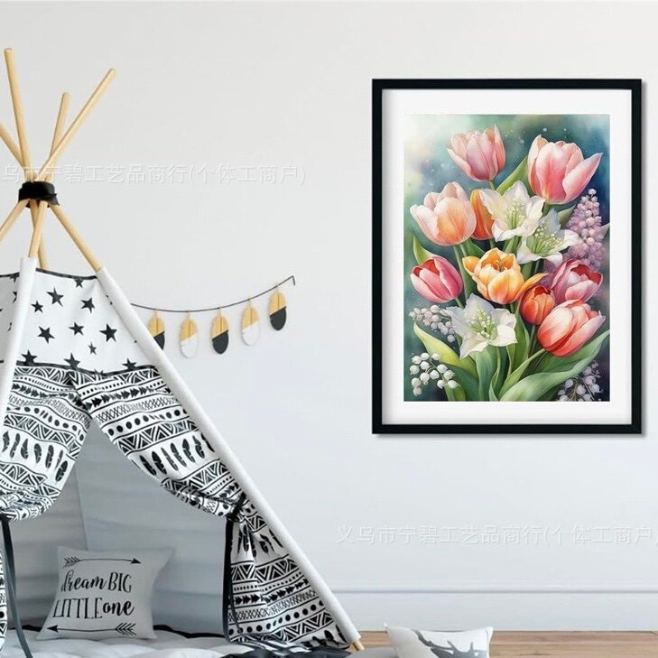 Картина алмазная мозаика на подрамнике 17*23 цветы лилии и тюльпаны информация: