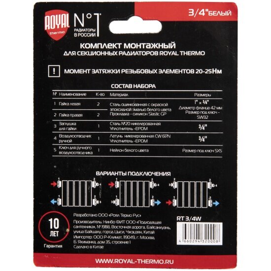 Монтажный комплект Royal Thermo 1"х 3/4" белый информация: