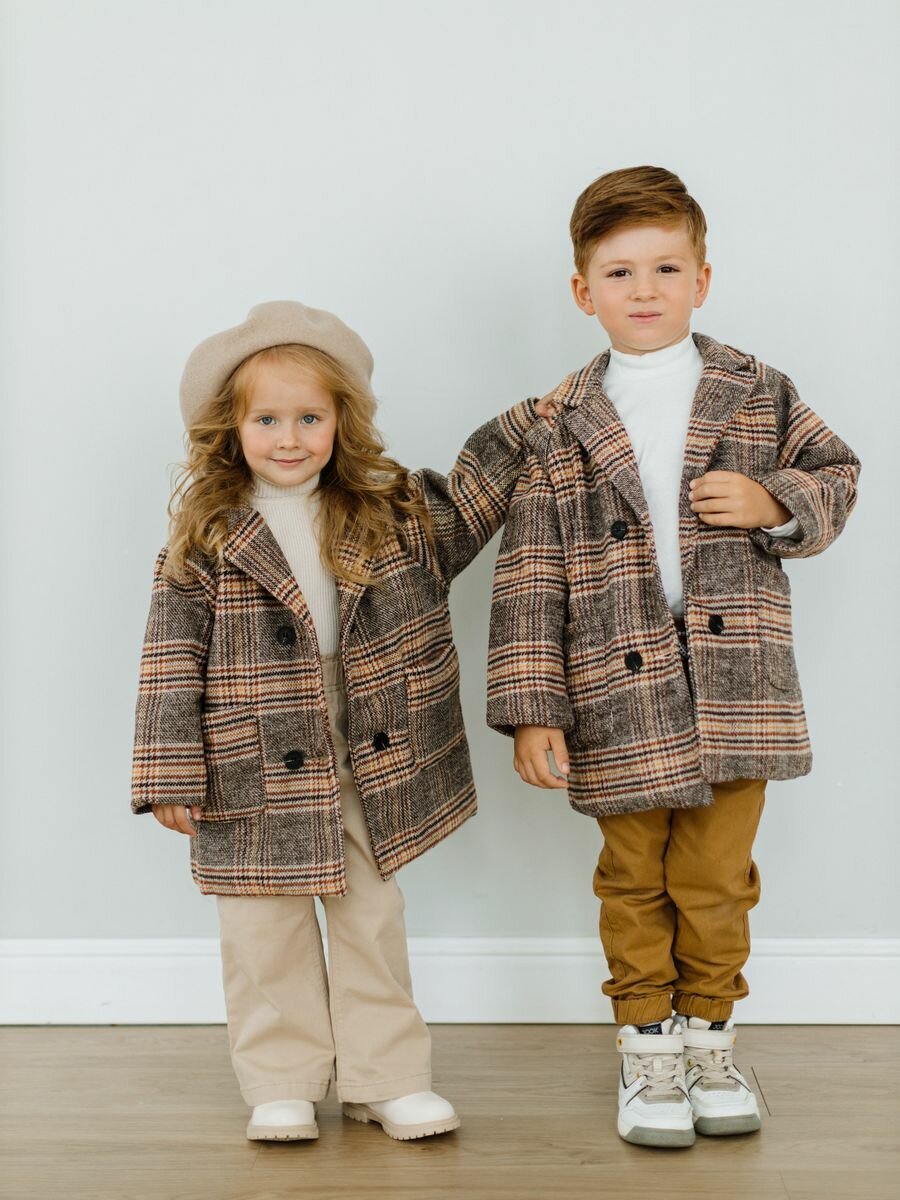 Пальто в клетку MakSiKi демисезонное для девочки/мальчика, размер -120