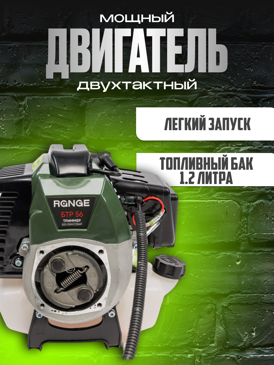 Триммер садовый Range БТР56, бензиновый, 3.3 л. с, леска/нож, с плечевым ремнём информация: