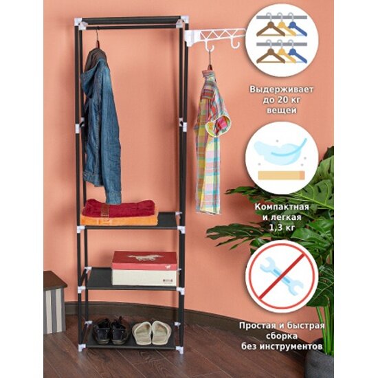 Вешалка напольная для одежды и обуви Helex W-23, 180 см, черная 2 404 ₽