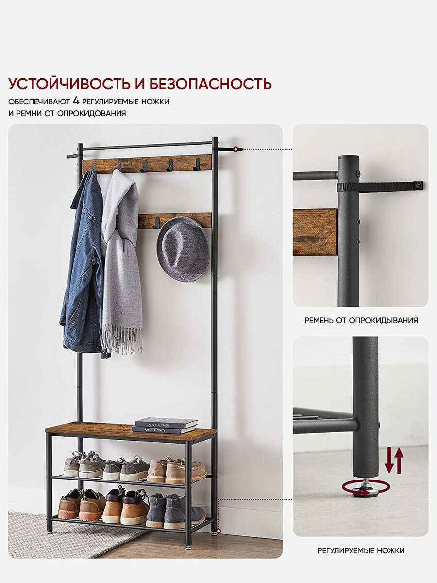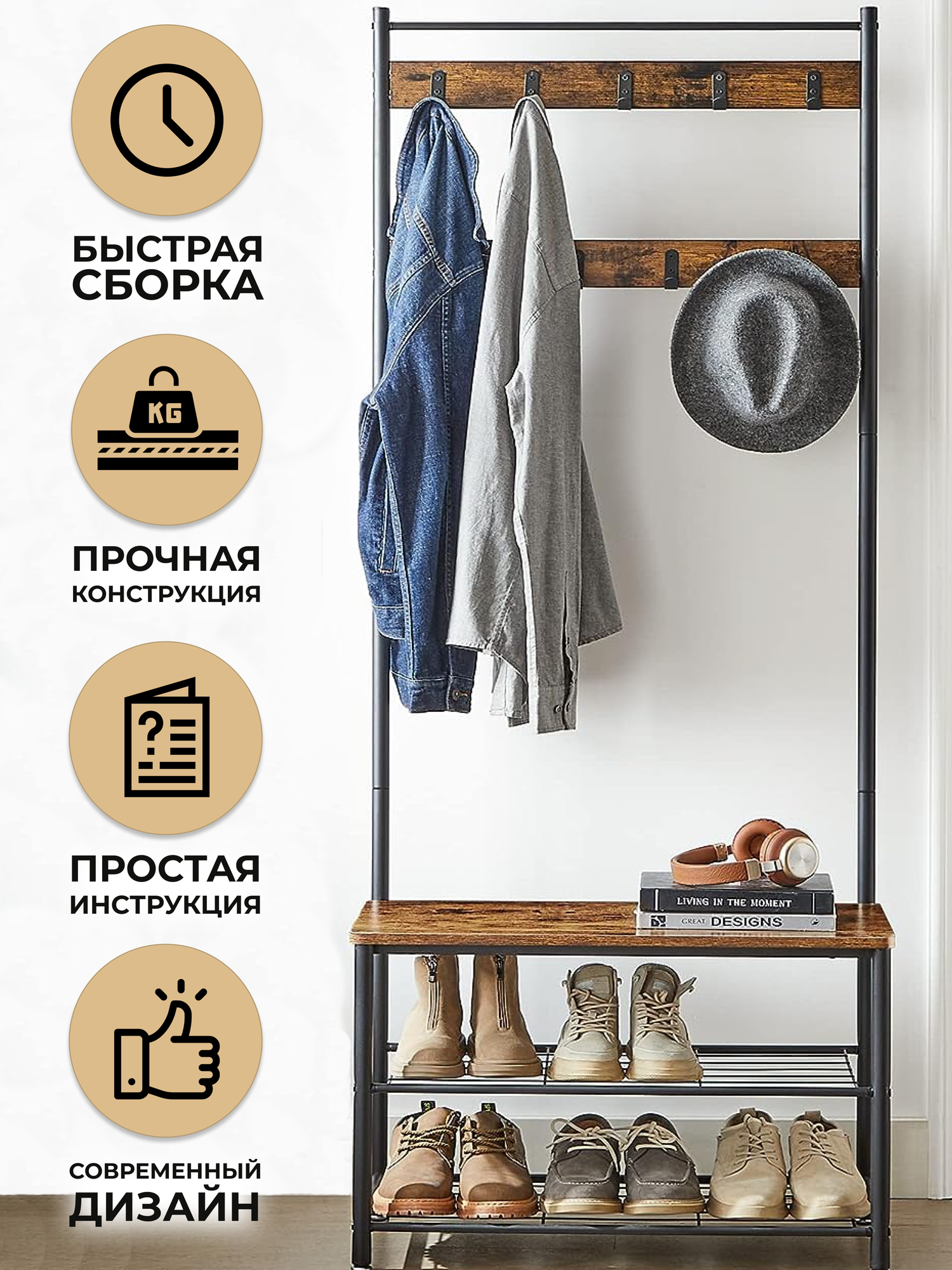 Отзывы на Вешалка напольная с полкой для обуви в стиле лофт премиум «AV Craft» 9 крючков, 3 полки